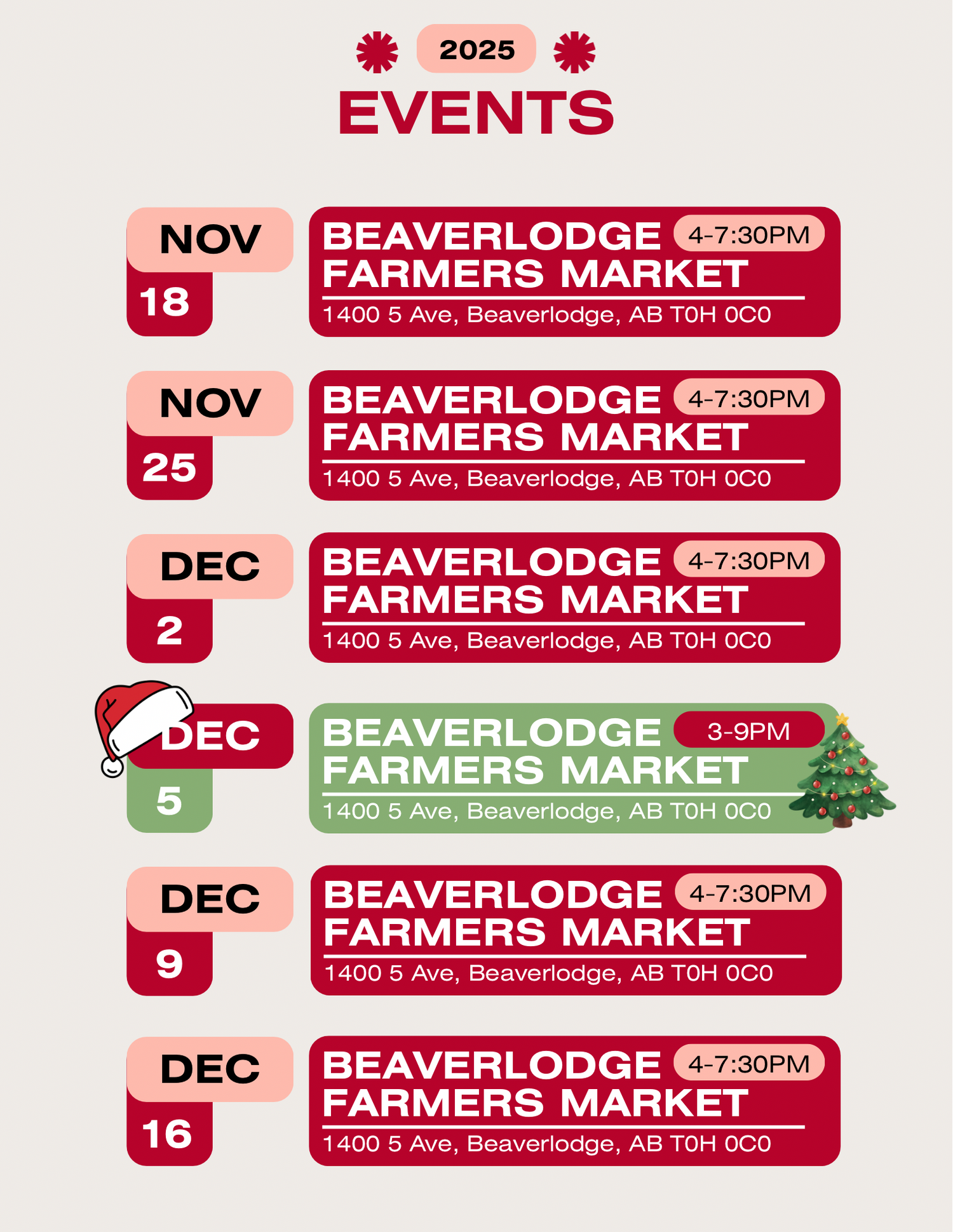 We’ll be at the Beaverlodge Farmers Market Tuesday nights at 4-7:30 PM. Come say hi and check out all the great vendors!